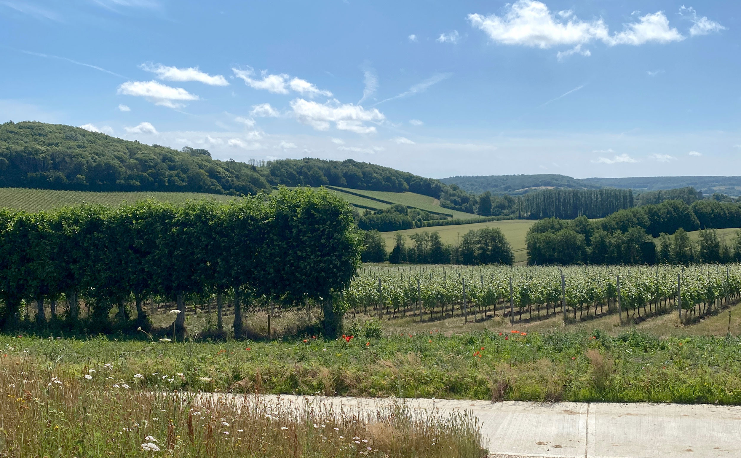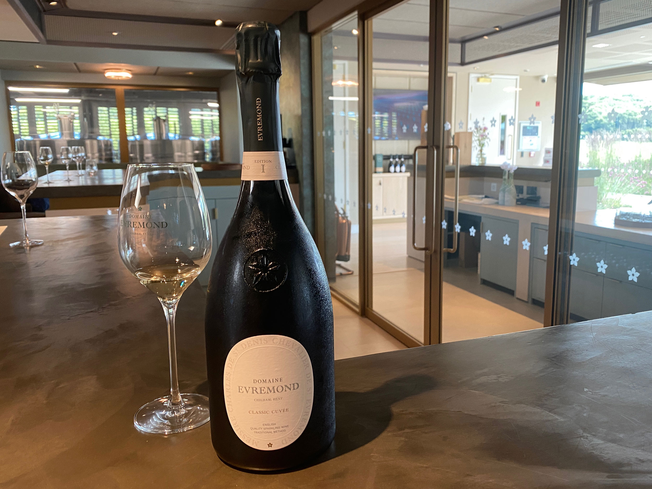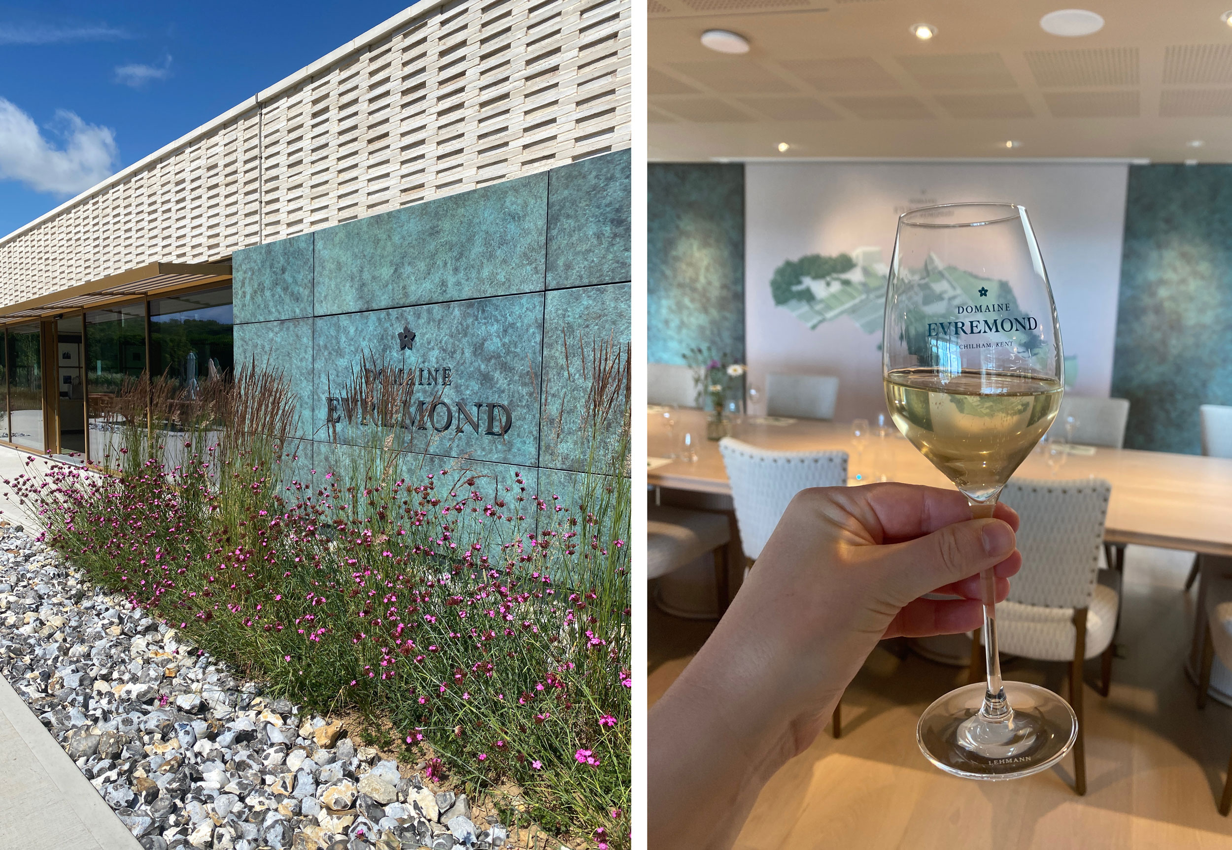 It’s a sunny Sunday morning in Chilham, Kent, and we are arriving at one of the most exciting new vineyards in the UK – Domaine Evremond. The landscape is stunning, and the vines are lit by the sun on all the hills surrounding the main winery building. It fits perfectly into the local landscape.